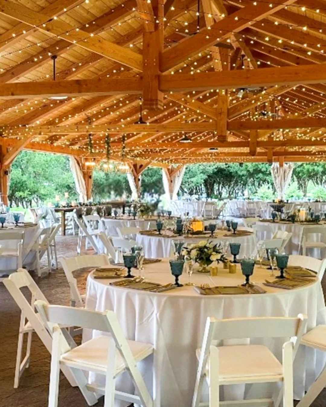 The Pavilion — all-weather reception with fireplace ambiance.